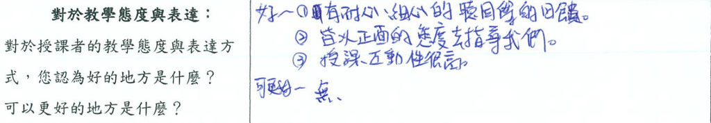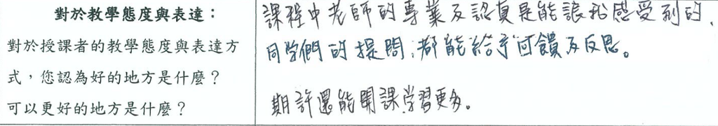 💡 「…感受到老師的真誠與熱誠,不是形式上的歡迎同學問問題。」