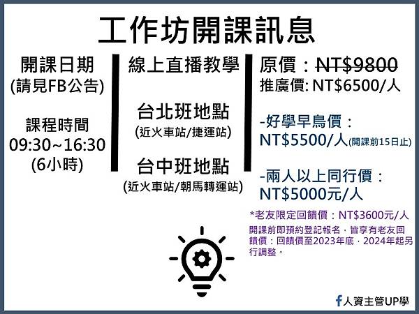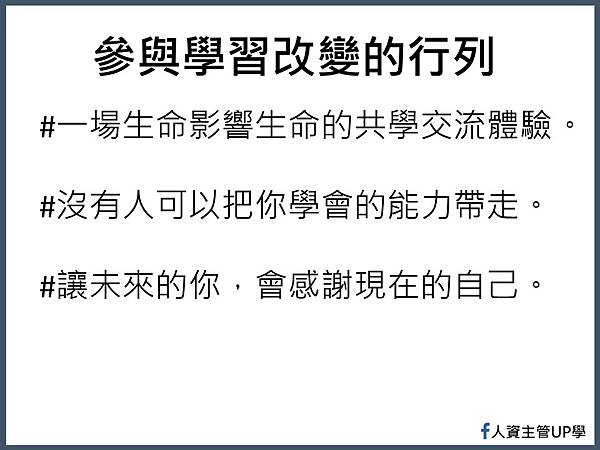 📣更多訊息可上網搜尋「影響力教練」,或參考 FB 「人資主管UP學」 https://pse.is/ulstb
